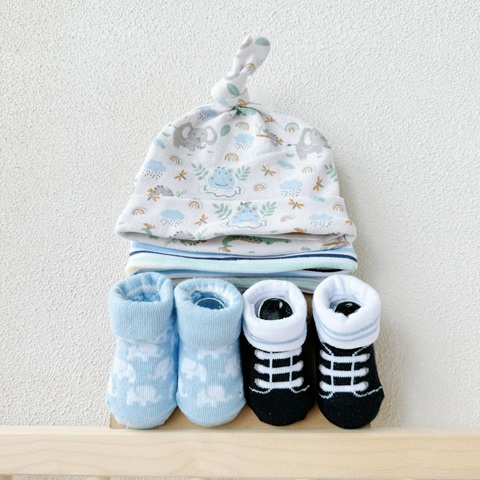Заводская распродажа, комплект из 5 От 0 до 12 месяцев новорожденных, хлопковая тюрбан, шапочка и носки, подарочный набор